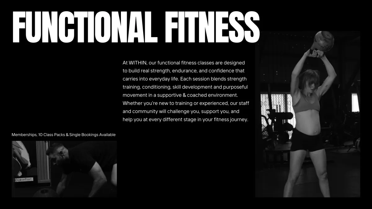 Functional fitness strengthens you for real life! Improving how you move, lift, carry and perform every day. It builds full body strength and conditioning. You’ll feel more capable, more confident and ready to take on life and the challenges that come with it.